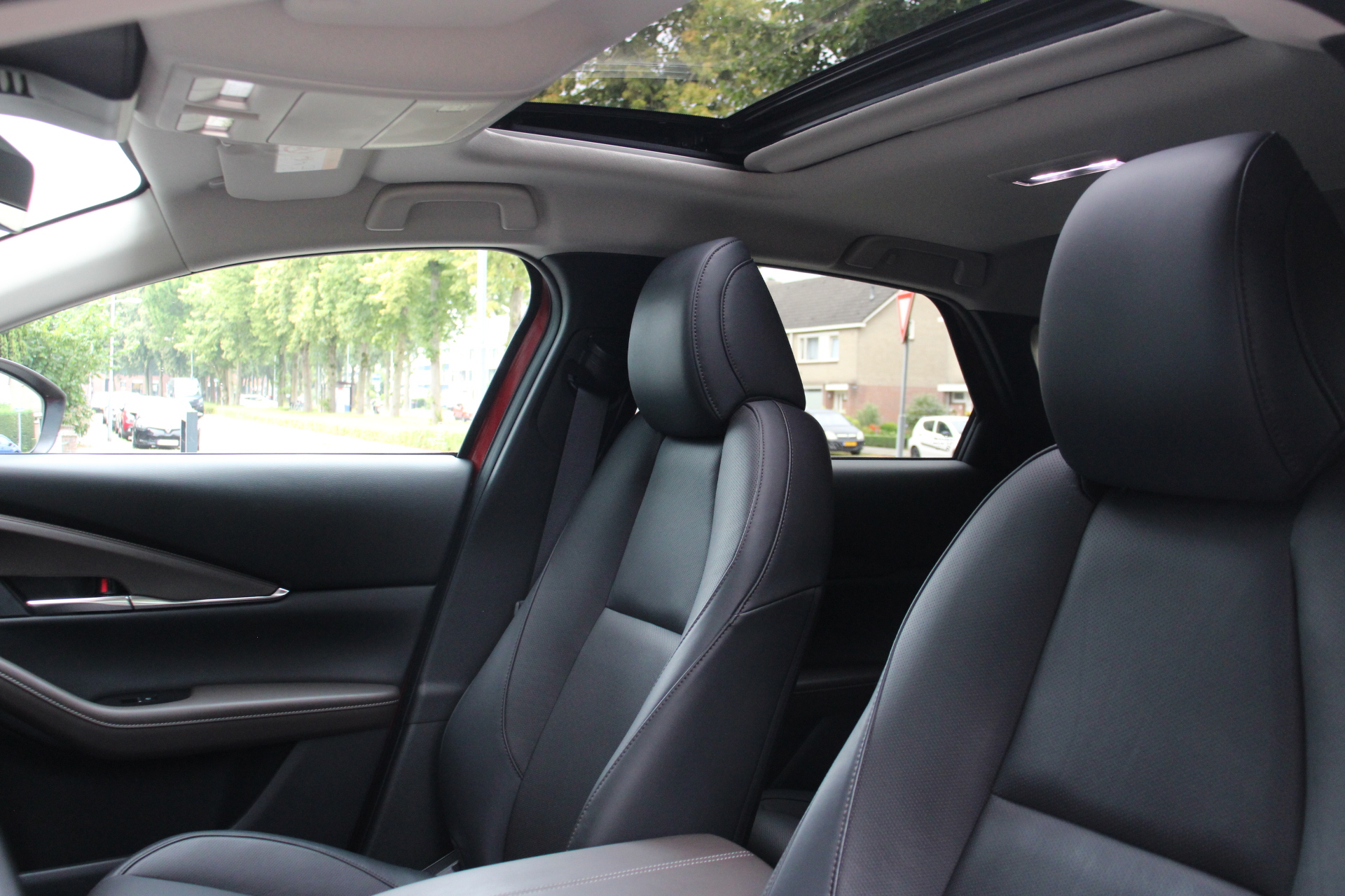 De nieuwste veiligheidssystemen komen in deze Mazda CX-30 samen. Dankzij de head-up display krijg je de gewenste dashboardinfo op de voorruit geprojecteerd. Een belangrijke bijdrage aan de veiligheid onderweg levert de verkeersbord-detectie in deze Mazda. Mooi binnen de lijnen van de rijstrook blijven? Het Lane-keeping systeem helpt altijd een handje. U bent mede dankzij dodehoekdetectie, forward collision warning system, hill hold functie, brake assist, vermoeidheidsherkenning en bandenspanningcontrolesysteem steeds veilig onderweg.