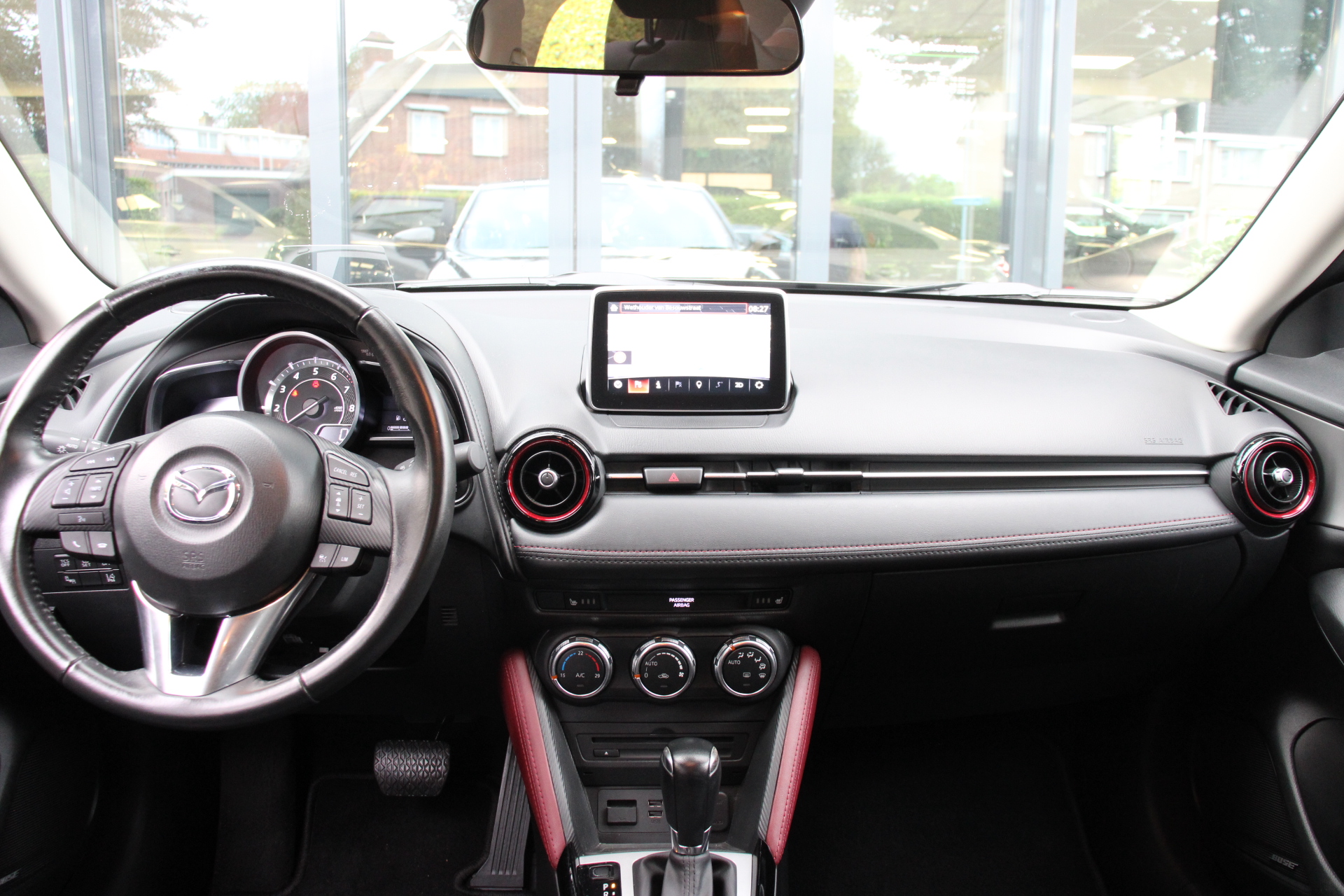 'Boem is ho'? Niet met deze achteruitrijcamera. U ziet achter net zo goed als voor en krijgt een duidelijk geluidssignaal! Het Bose audiosysteem streelt uw oren onderweg. Tot de standaard uitrusting van deze auto hoort ook automatische airconditioning. Het luxeniveau in deze Mazda is niet alleen gericht op comfort, maar ook op uw veiligheid. Tal van sensoren helpen u om de omgeving in de gaten te houden. De automatisch inschakelbare verlichting zorgt dat automatisch de verlichting wordt ingeschakeld als het donker wordt, wat bijvoorbeeld in tunnels erg handig is. En de regensensor zet de ruitenwissers aan zonder dat u eraan hoeft te denken. Cruise control houdt automatisch de ingestelde snelheid vast. Het is een ideaal hulpmiddel om lange ritten comfortabeler te maken. En deze auto heeft ook dashboard met spraakbediening, Bose-audioinstallatie, full map navigatiesysteem, DAB ontvangst, keyless entry en lederen stuur en versnellingspook als standaard uitrusting.