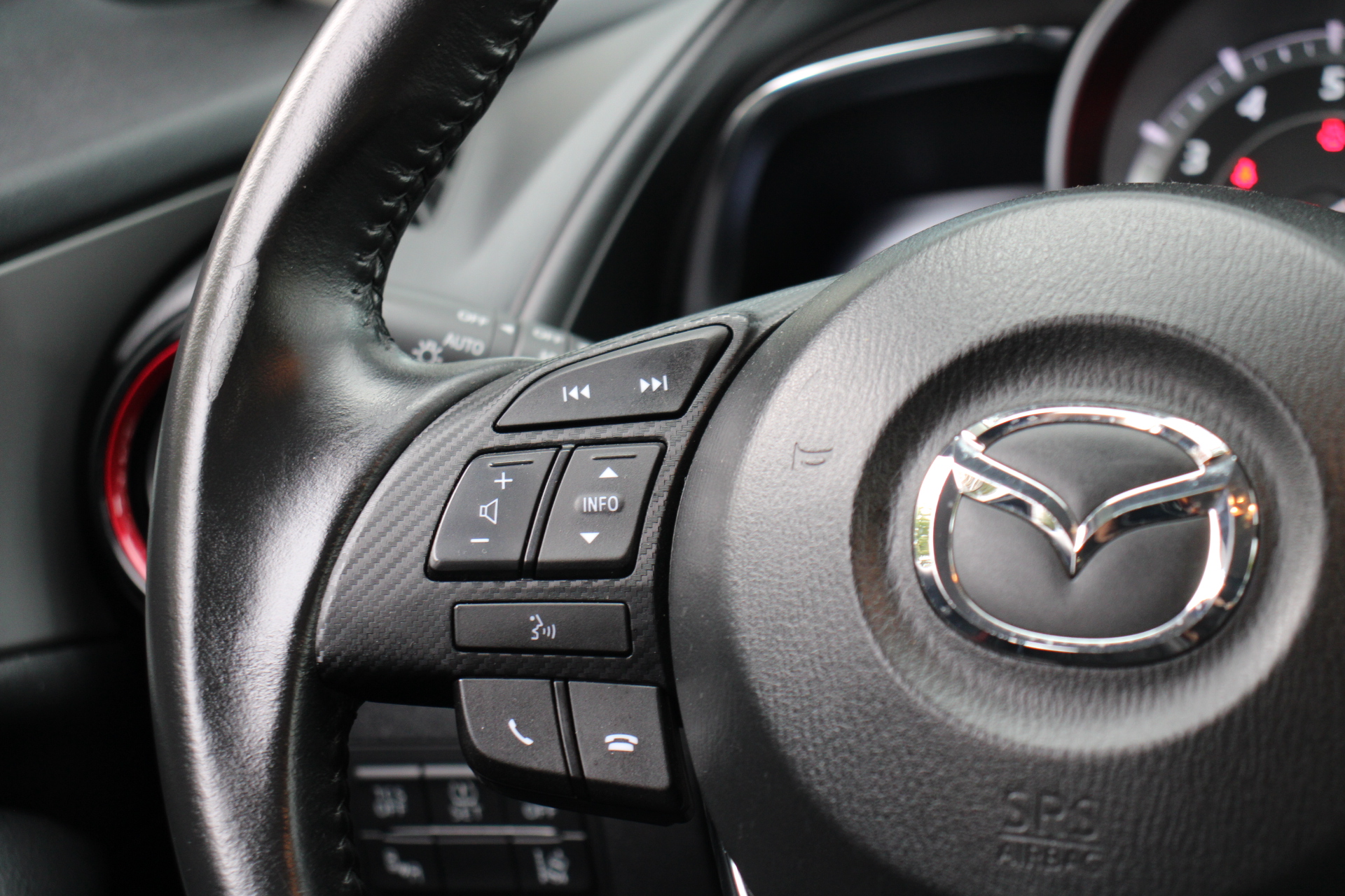 De nieuwste veiligheidssystemen komen in deze Mazda CX-3 samen. Een camera houdt de juiste koers binnen de rijstrook in de gaten en het Lane-keeping systeem corrigeert bij afwijkingen. Brake assist is uw redder in een noodsituatie. Bij een dreigend ongeval zorgt het systeem ervoor dat u sneller stilstaat. In deze Mazda vinden we verder een head-up display, hill hold functie en bandenspanningcontrolesysteem.